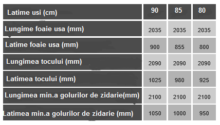 | Dimensiune | 80 sau 90 sau 100** sau 90N |